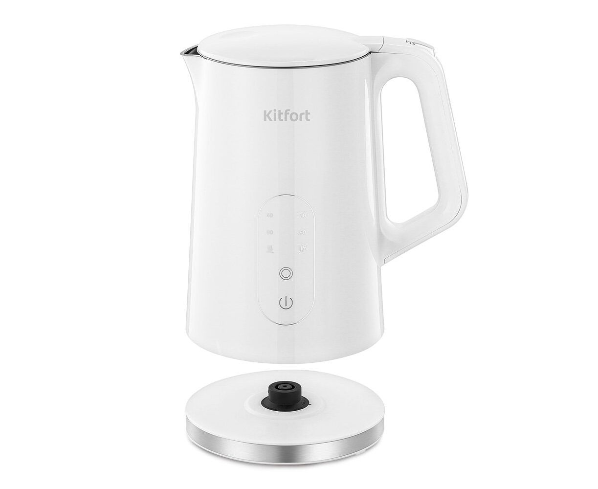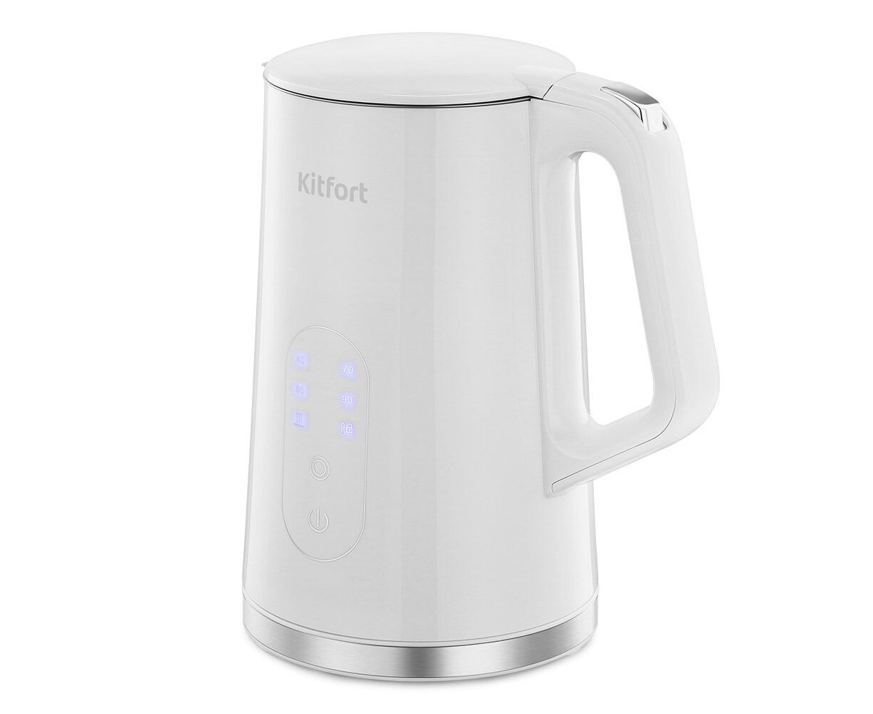 Электрический чайник Kitfort КТ-6702 может не только вскипятить воду, но и нагреть ее до 40, 70, 80 и 90 °С, что очень удобно при заваривании различных сортов чая. Чайник также оснащён функцией поддержания температуры в течение 2 часов.