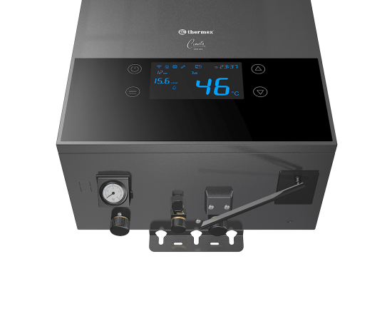 4.Комфортное управление: Электронное управление через панель на фронтальной стороне котла обеспечивает мгновенный доступ ко всем необходимым данным по работе оборудования. Благодаря технологии Wi-Fi Motion, вы можете управлять котлом дистанционно с помощью приложения Thermex Home, настраивая алгоритмы нагрева и температуру.
