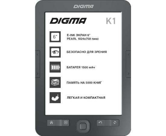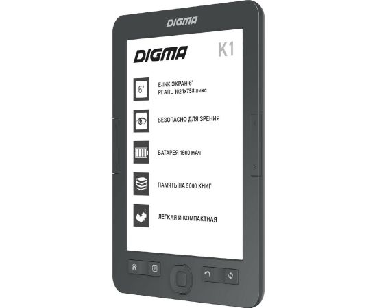 Электронная книга Digma K1 6" E-ink HD Pearl 758x1024 темно-серый
