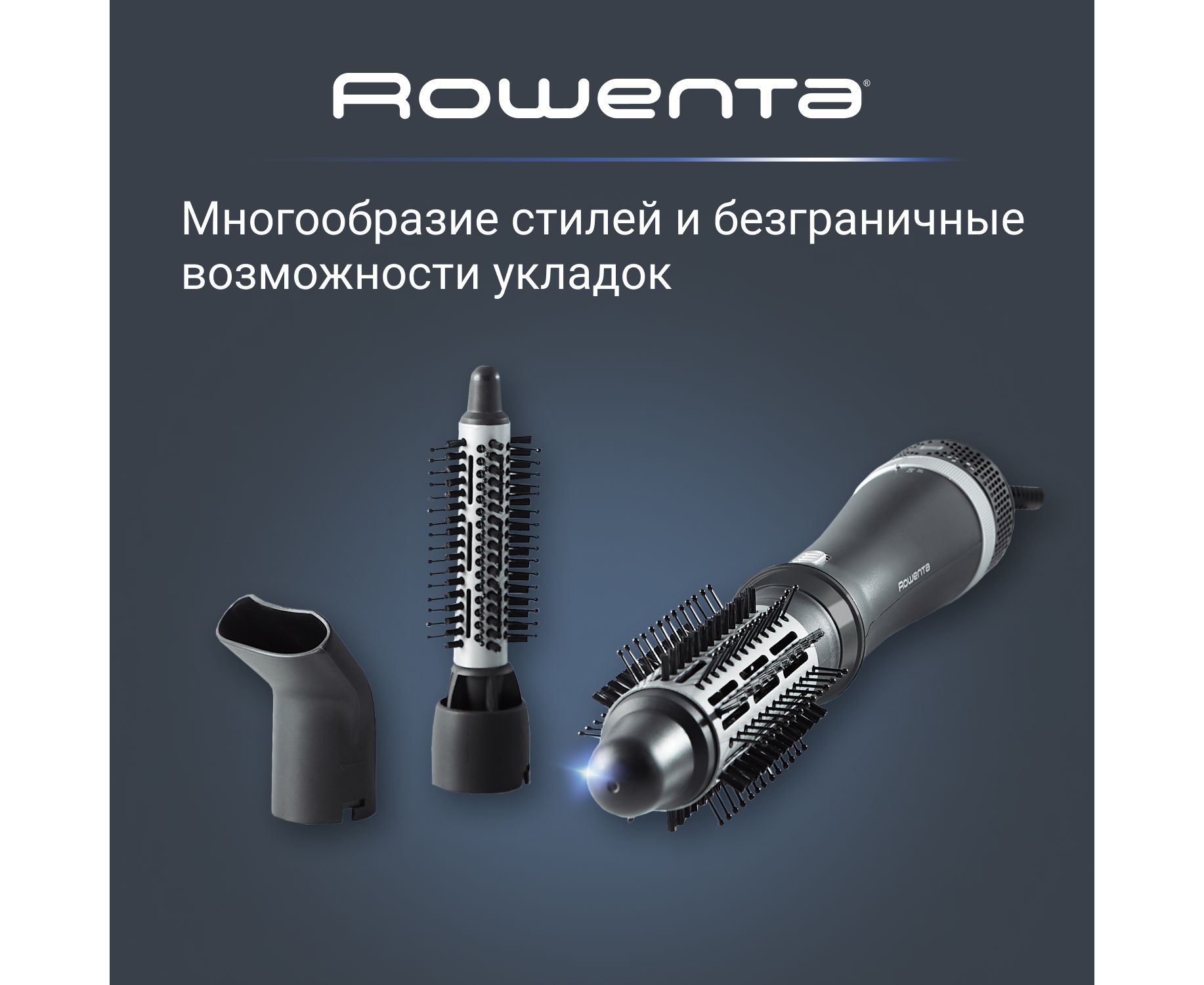 Фен-щетка - 1 шт; насадка-концентратор - 1 шт; круглая насадка 20 мм - 1 шт; круглая насадка 40 см - 1 шт; инструкция