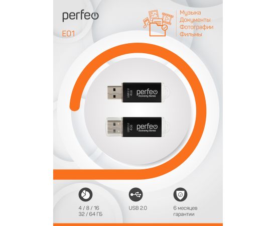 Флешка Perfeo USB 4GB E01 чёрная economy series