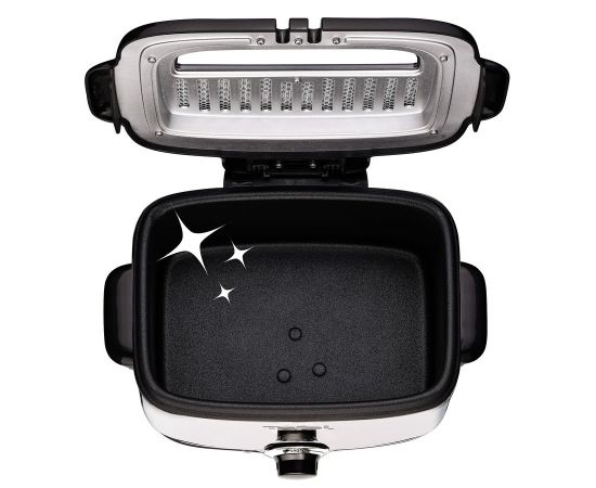 Особенности: Несъемная чаша с антипригарным покрытием. Регулируемый термостат со световым индикатором. Легко мыть все детали в посудомоечной машине.