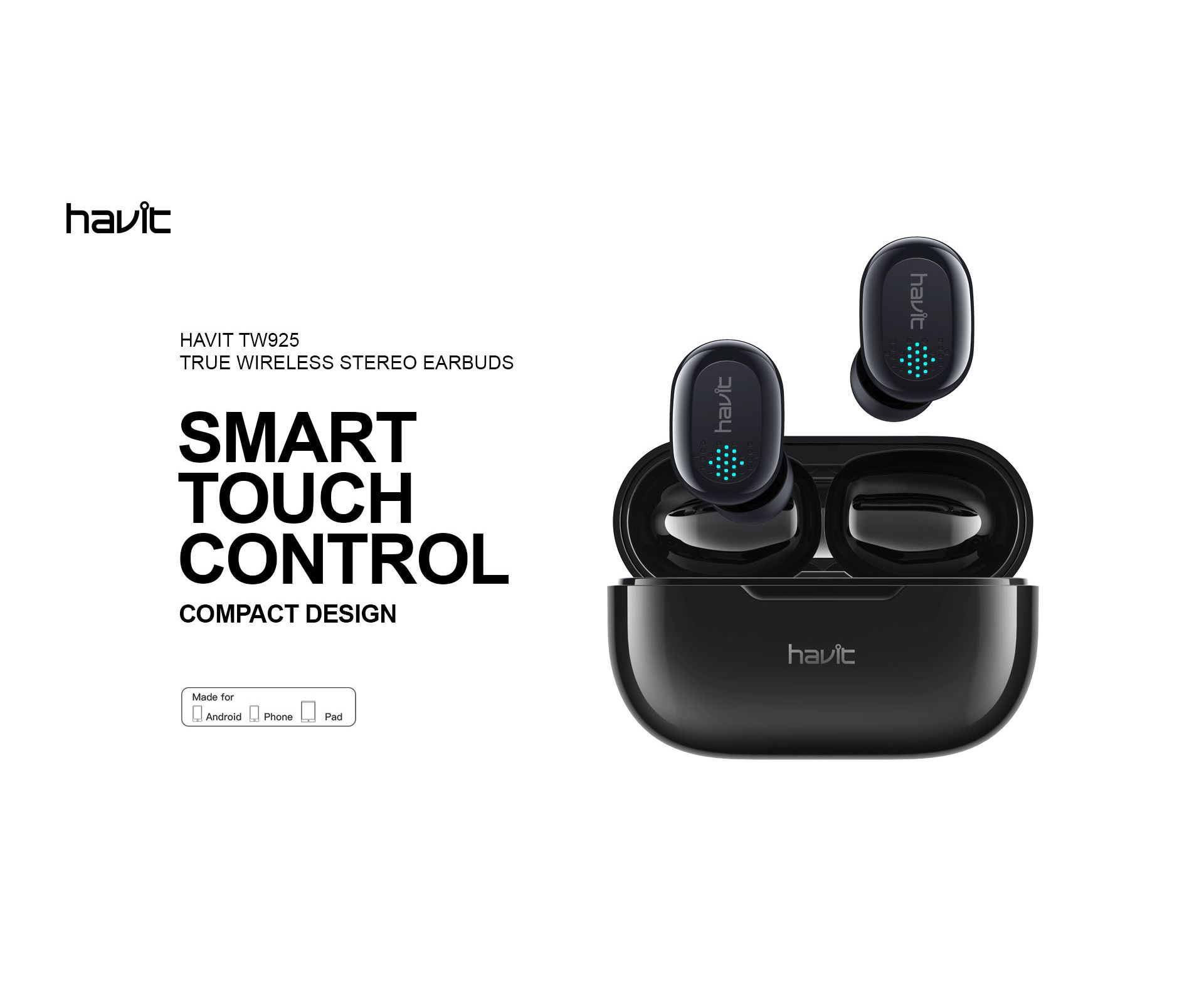 Гарнитура беспроводная внутриканальная HAVIT HV-TW925 Bluetooth V5.0 TWS Чёрная