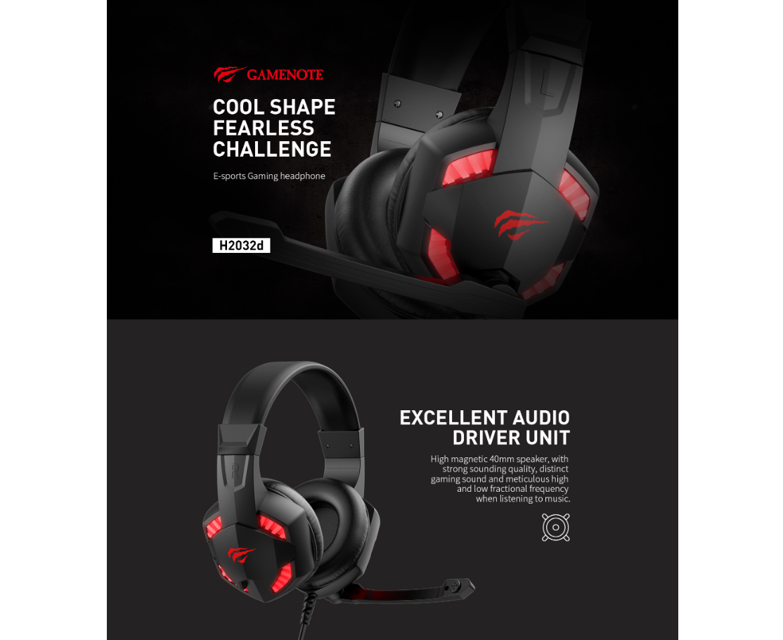 Гарнитура игровая с подсветкой HAVIT GAMENOTE HV-H2032d Gaming Черно-красная