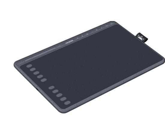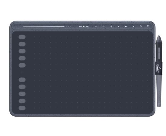 HUION HS611 современный ультратонкий и лёгкий графический планшет. Основная особенность HS611 - это наличие мультимедийной панели на корпусе планшета с функцией управления воспроизведением музыки, а также функцией навигации между запущеными приложениями.
