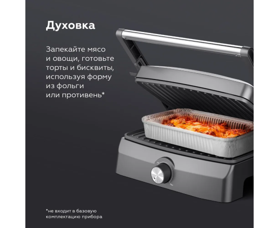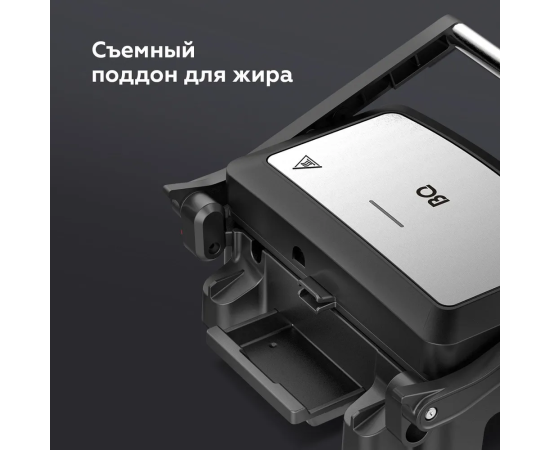 Конструктивные особенности тепловых приборов: Антипригарное покрытие, Вертикальное хранение, Поддон для сбора жира, Раскрытие на 180°
