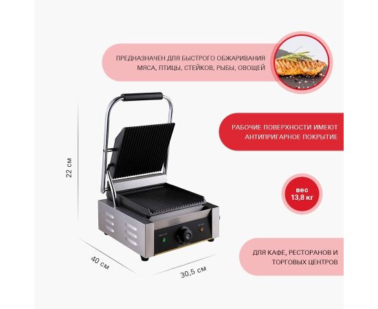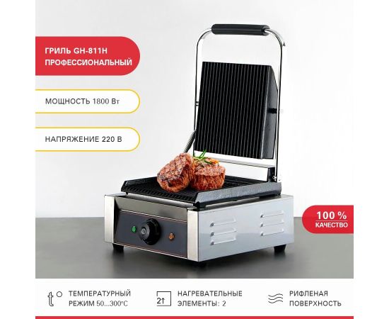 Контактный гриль Viatto GH-811H 63390 используется в ресторанах, кафе, заведениях быстрого питания для обжаривания мяса, рыбы и овощей, приготовления различных сендвичей.