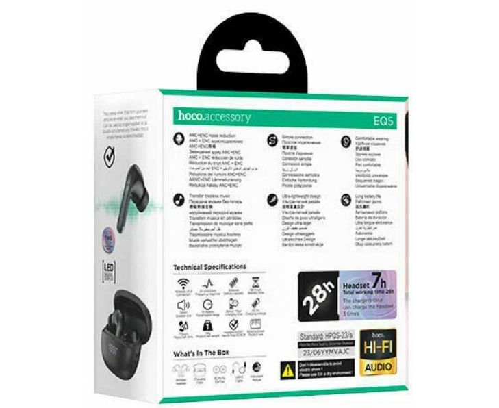 Блютуз гарнитура TWS Hoco EQ5/ ANC+ENC/ Черный