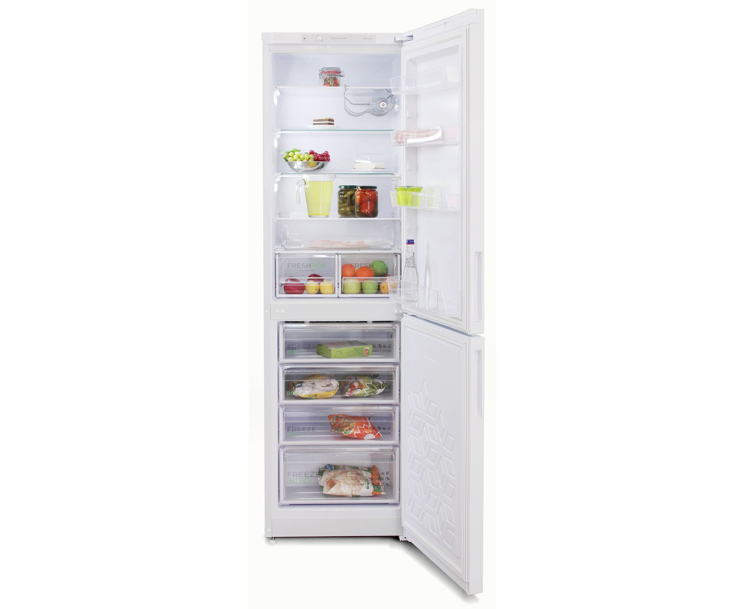 Комплектация Подставка для яиц, масленка, выдвижной лоток, складные полки, полка для бутылок