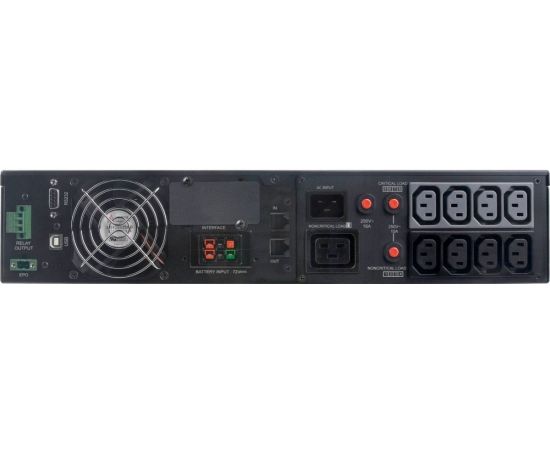 с двойным преобразованием, 2000 ВА / 1800 Вт, многофункциональный ЖК-дисплей, 8 компьютерных разъемов (IEC 320 C13), USB, RS-232, USB, RS232, релейный выход, EPO, защита телефонной линии