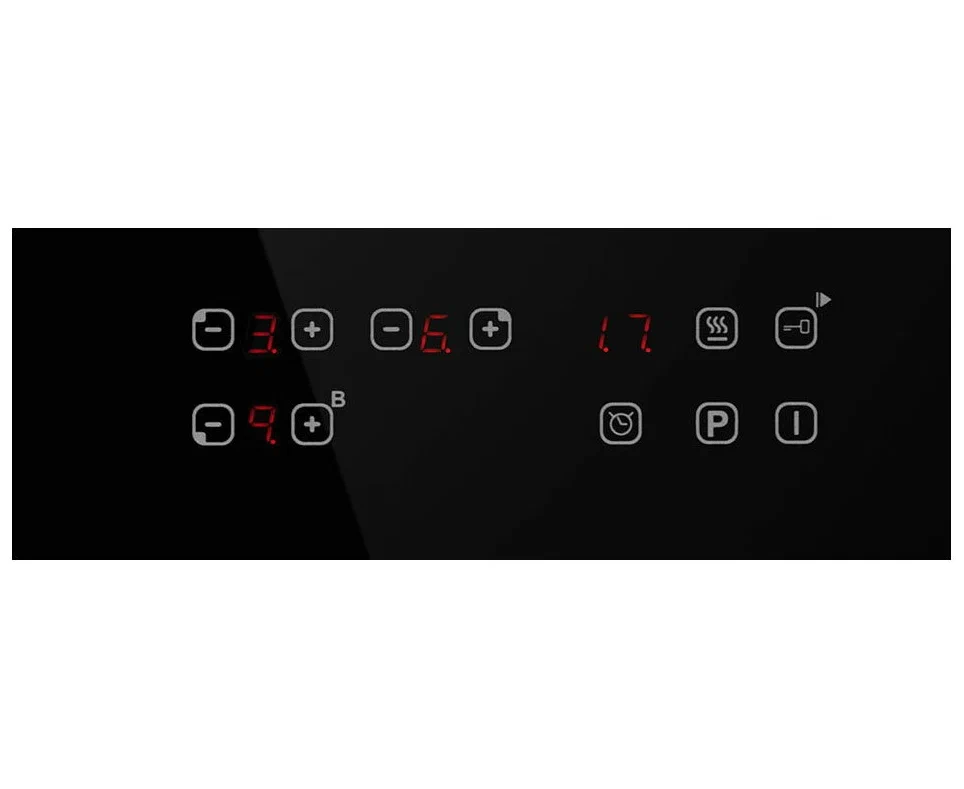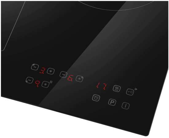 защитное отключение конфорок, индикатор остаточного тепла, кнопка блокировки панели