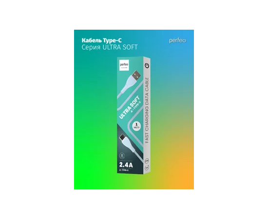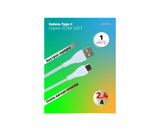 Кабель PERFEO USB A вилка - C вилка, 2.4A, голубой, силикон, длина 1 м., ULTRA SOFT (U4712)