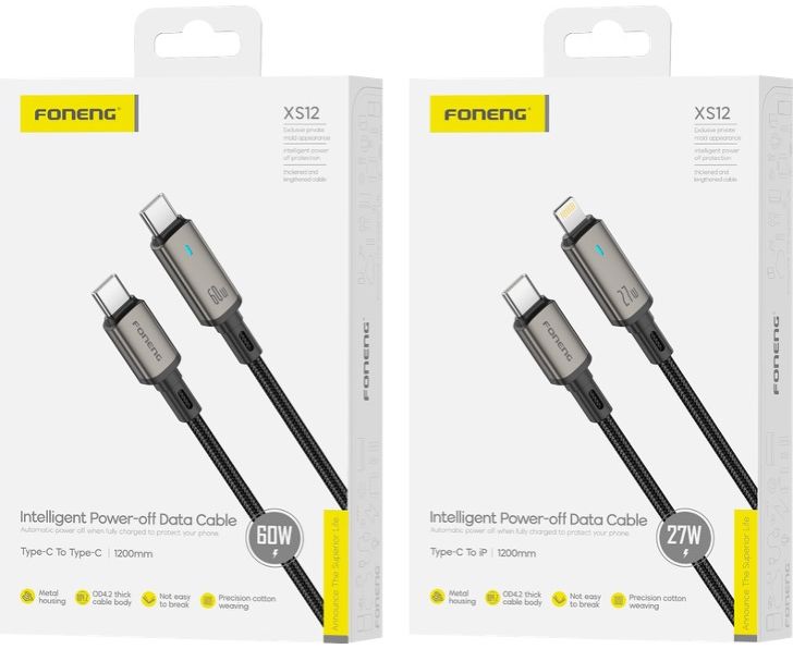 Кабель Type-C to Lightning Foneng XS12 1.2M, 27W с автоматическим отключением (Black)