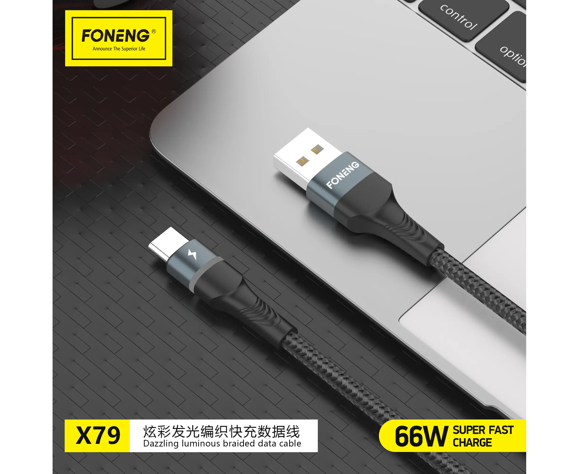 Кабель USB to Type-C Foneng X79 1.2M, 66W нейлон (Black)