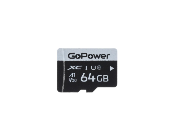 Карта памяти GoPower 00-00025677 microSD 64GB Class10 70 МБ/сек V30 без адаптера