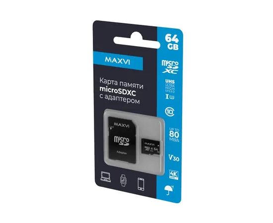Карта памяти Maxvi (MSD64GBC10V30) microSDXC 64GB, class 10, UHS-I (3), V30