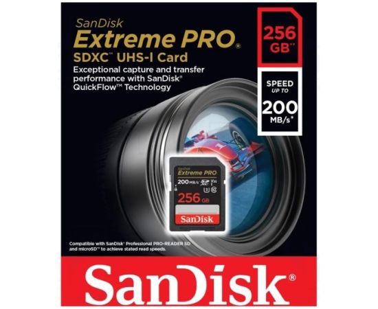 Карта памяти SanDisk (SDSDXXD-256G-GN4IN) 256GB SDXC Class 10 V30 UHS-I U3 Extreme Pro 200MB/s