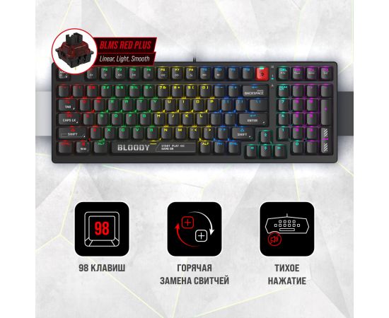 Клавиатура A4Tech Bloody S98 механическая черный USB for gamer LED (S98 BLACK)