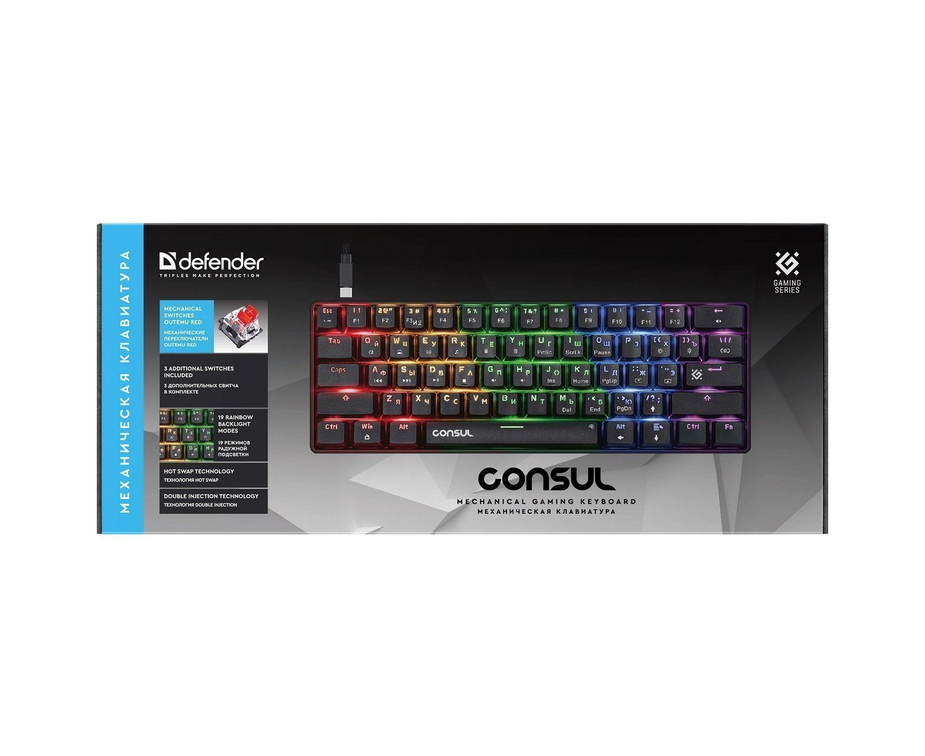Клавиатура Defender Consul GK-220 игровая механическая (61кн, OUTEMU Red) (black) (237348)