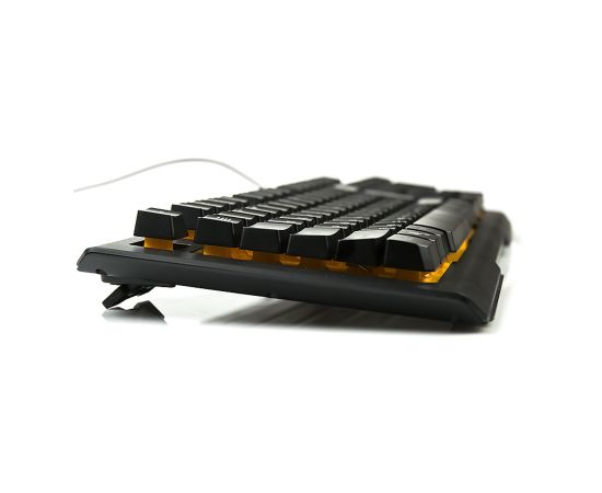 5. Материал - черный матовый пластик, желтая подложка под клавишами.