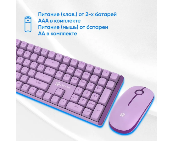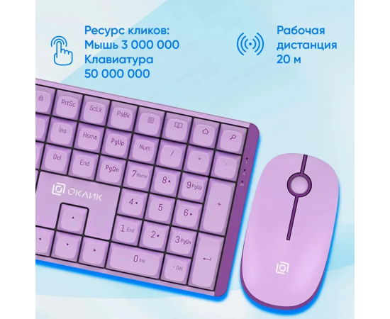 Клавиатура + мышь OKLICK S315W клав:сиреневый мышь:сиреневый USB беспроводная Multimedia (1978643)