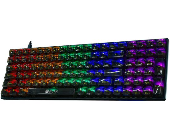Механическая игровая клавиатура Оклик 915GK подчеркнет захватывающую атмосферу во время игры и поможет с комфортом достигать впечатляющих результатов в различных тайтлах. Модель выполнена в черном цвете и оснащена прозрачными кейкапами, сквозь которые видна многоцветная подсветка. Прозрачный корпус придает устройству неповторимый геймерский дизайн.