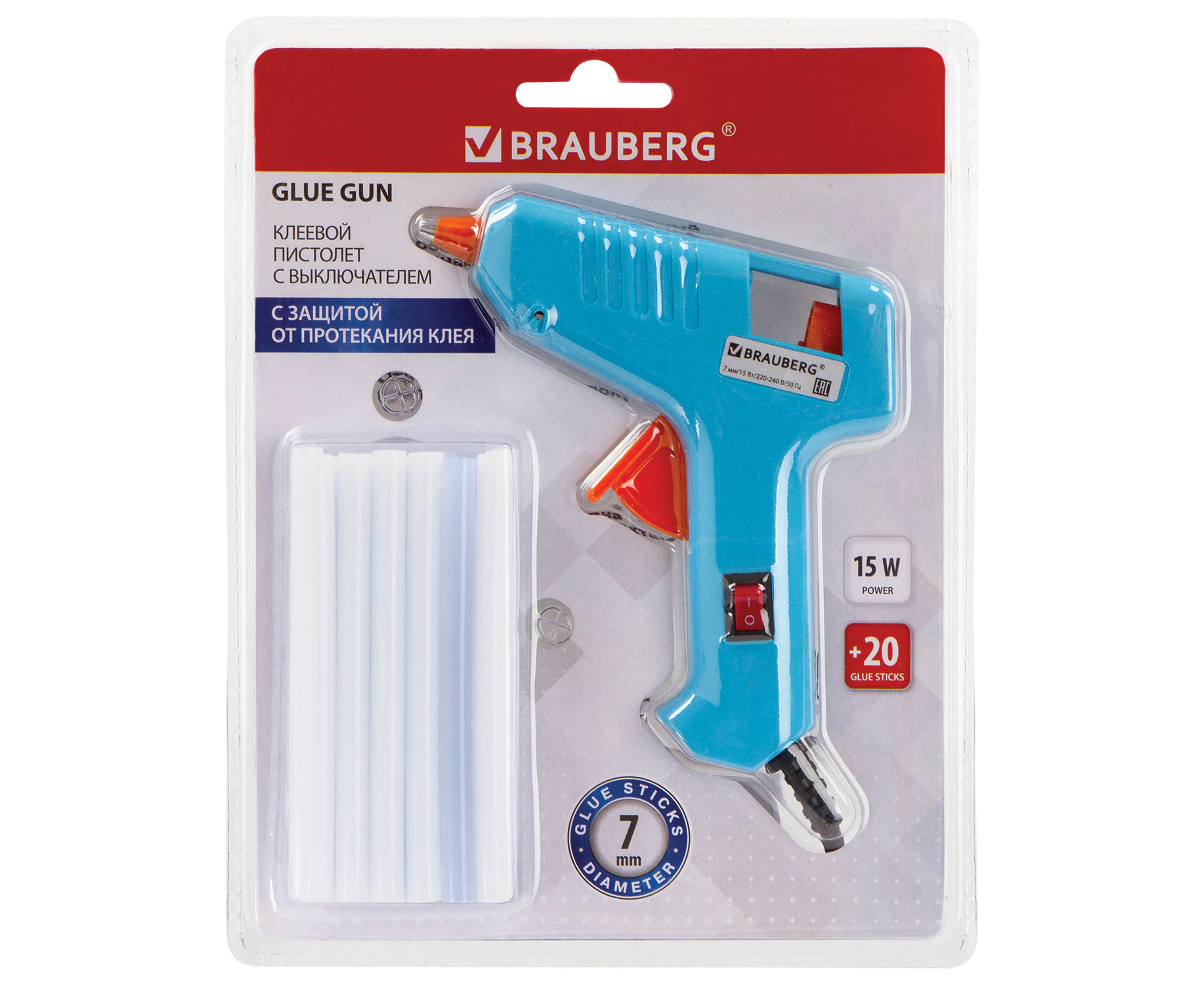 Клеевой пистолет BRAUBERG 671052 15Вт для стержня 7мм