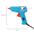 Рабочая температура пистолета: 130-272 °C. 20 клеевых стержней (10 белых и 10 прозрачных) в комплекте. Корпус изготовлен из ударопрочной пластмассы и имеет скобу для надежной установки в нерабочем положении. Имеется защитный механизм от протекания клея. Используется клеевой пистолет, в основном, в быту, там, где нужно что-то подклеить в небольшом объеме, например, для декорирования или изготовления упаковочной и сувенирной продукции. Удобен для работы с малогабаритными изделиями.