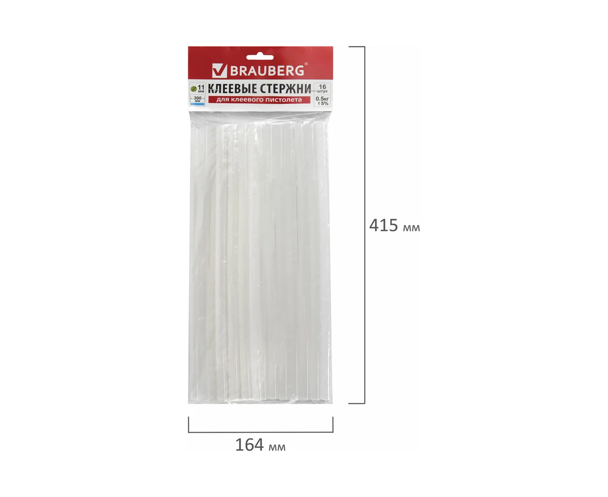 Клеевые стержни BRAUBERG 670295 диаметр 11мм, длина 300мм, прозрачные, комплект 16 штук