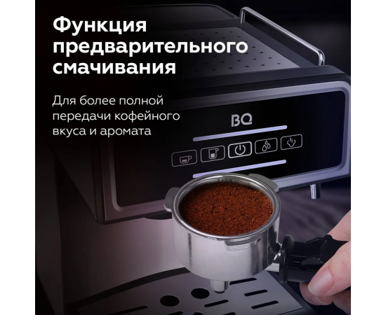 Кофеварка рожковая с капучинатором BQ CM2000 Черно-серебристая с подогревом чашек