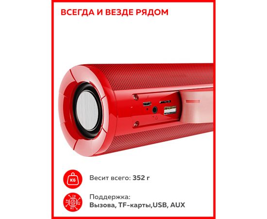 1. Спикер: 45мм*2 4Ω5W THD+N 10%. 2. Размеры: 180*65*66.2мм. Вес: 352г. 3. Беспроводная спецификация: BT V5.0 JL. 4. Поддержка протоколов: A2DP, AVRCP, HFP. 5. Зарядное напряжение DC5V. Время зарядки: около 3 часов. 6. В режиме разговора / воспроизведения: около 3 часов. 7. Батарея класса A 18650: 1200мАч.