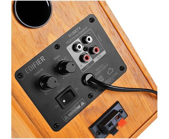 Акустика 2.0 EDIFIER R1000T4 brown. Входная мощность: 24 Вт. В комплекте: колоночный кабель, RCA-AUX кабель, RCA-RCA кабель, инструкция пользователя.