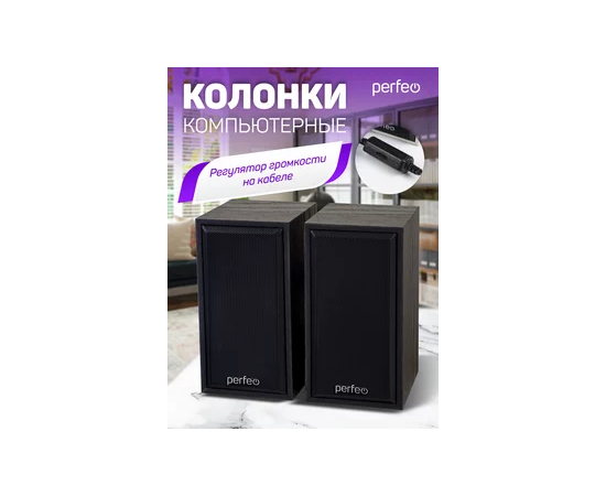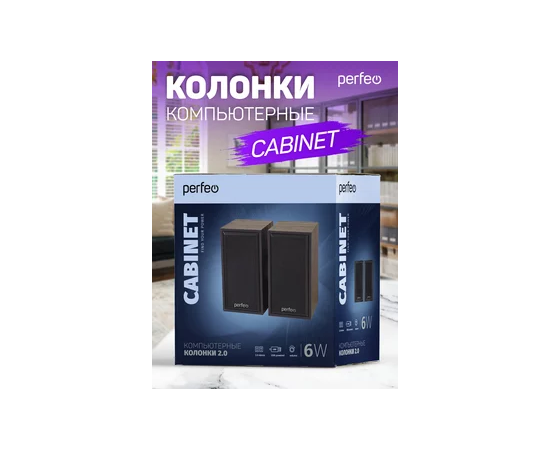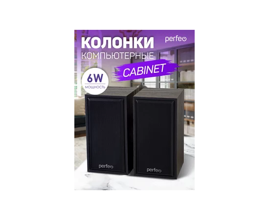 Колонки Perfeo"CABINET" 2.0, мощность 2х3 Вт (RMS), цвет чёрный дерево, USB