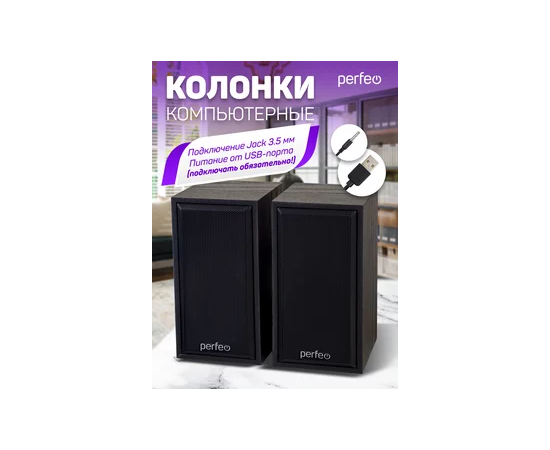 Колонки для компьютера Perfeo "CABINET" - отличное решение для рабочего места. Корпус выполнен из высококачественного МДФ с имитацией структуры дерева. Деревянные колонки воспроизводят более качественный звук, чем пластиковые из-за отсутствия вибрации корпуса. Колонки для ноутбука будут органично смотреться в любом интерьере. Есть 4 варианта отделки - "чёрное дерево", "белый дуб", "бук" и "махагон". Подключение колонок осуществляется к USB порту компьютера, а также их можно запитать от Power Bank'a или через сетевой адаптер. USB провод обязательно подключаем!!! Колонки обладают мягким сбалансированным звучанием. Небольшой фазоинвертор на задней стенке колонок делает звук более глубоким и насыщенным. С помощью регулятора на кабеле плавно настраивается желаемая громкость звука! Колонки для пк "CABINET" имеют стандартный 3.5-мм аудио-кабель, с помощью которого возможно подключение к любому совместимому аудиоустройству. На нижней части корпуса имеются мягкие накладки, предотвращающие мебель от царапин и для большей устойчивости колонок на столе. Металлические решётки-сетки, покрытые прочной эмалью, надёжно защитят динамики от случайных повреждений и надолго сохранят презентабельный внешний вид колонок. Длина USB и аудио кабеля (1,25 м) позволяет размещать колонку там, где вам комфортно и необходимо. Межколоночное расстояние провода 85 см. Обязательно подключение USB кабеля для питания колонок.