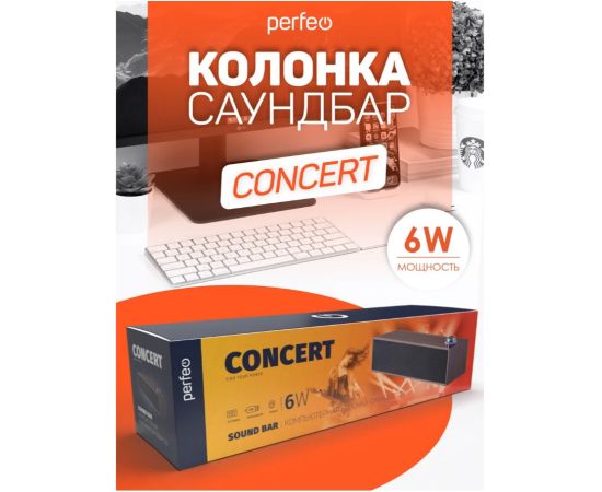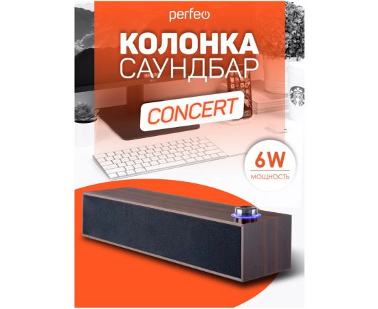 Компьютерная колонка-саундбар Perfeo "CONCERT", мощность 6 Вт, USB, "дерево", коричневый