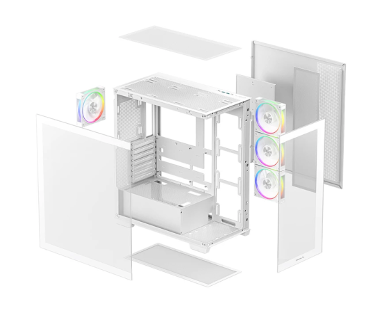 Корпус Deepcool CG580 4F V2 WH без БП, боковое окно (панорама), 4x120mm ARGB PWM вентилятора, белый, ATX