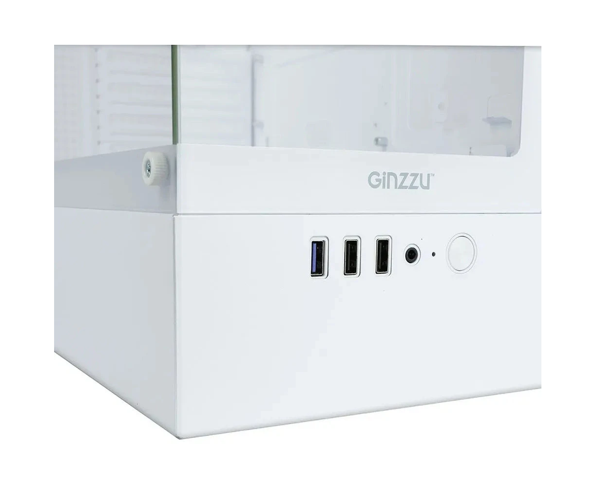 Корпус Ginzzu CL485 mATX Fan 3*12LD4 передняя панель cтекло белый