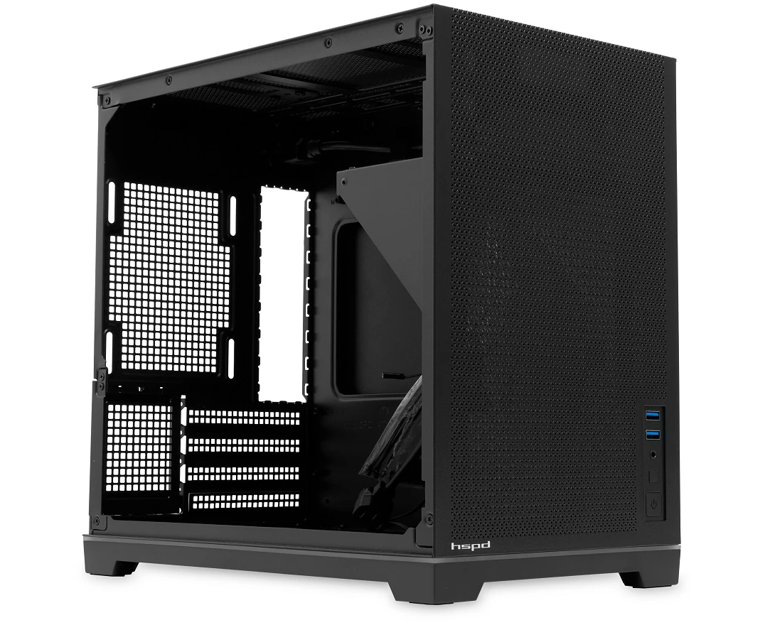 Корпус HSPD M211 (M211-TGBK) без БП, Mesh Mini-Tower, Black, TG, 0.7 SPCC, no fans,mATX, mITX, 175/330/150mm, 2x2.5", 1x3.5", 4xPCI