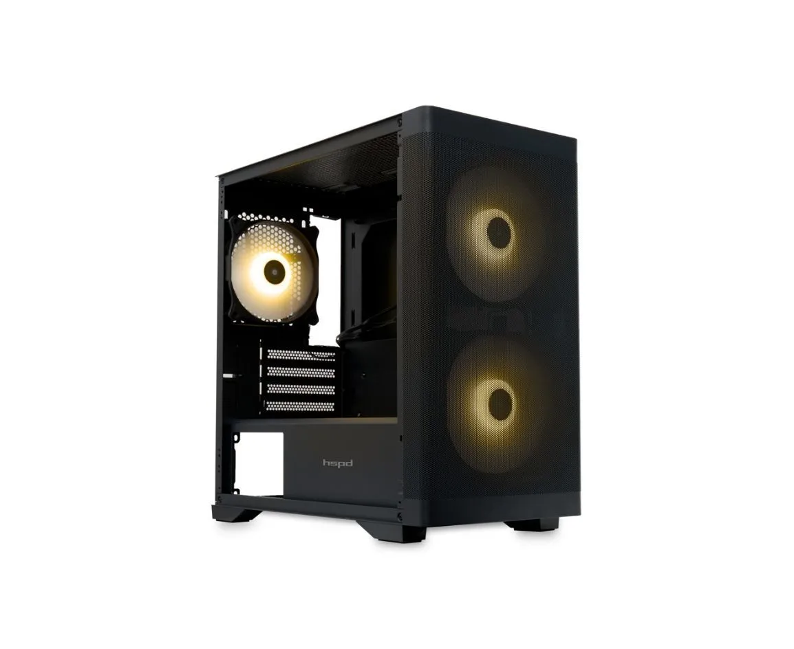 Корпус HSPD M320 (M320-TGBK-ARGB), Mesh Mini-tower, Black, slide TG, 0.45 SPCC, 2x140mm ARGB+1x120mm ARGB mATX