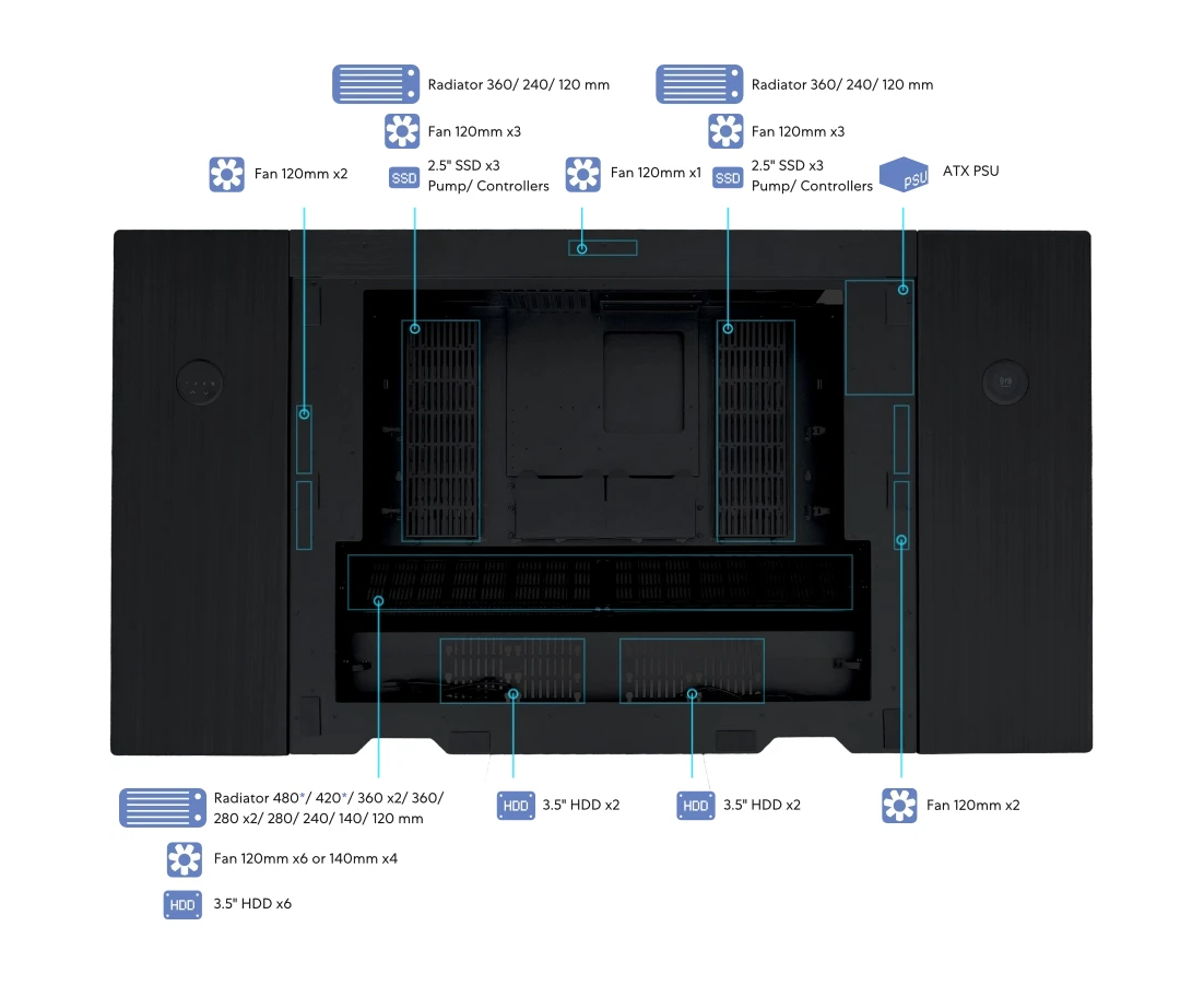 Корпус Lian-Li DK07X (G99.DK07X.10RU) черный без БП E-ATX 10x120mm 3x140mm 2xUSB3.0 audio bott PSU