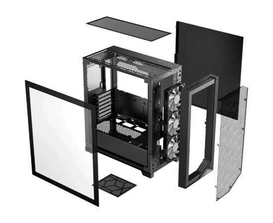 Корпус PcCooler C3D510 BK ARGB без БП, Tempered Glass Full Tower, Black, TG, 0.7 SPCC, 3x120mm E-ATX, ATX, mITX 170/390/410mm 2x2.5", 7xPCI