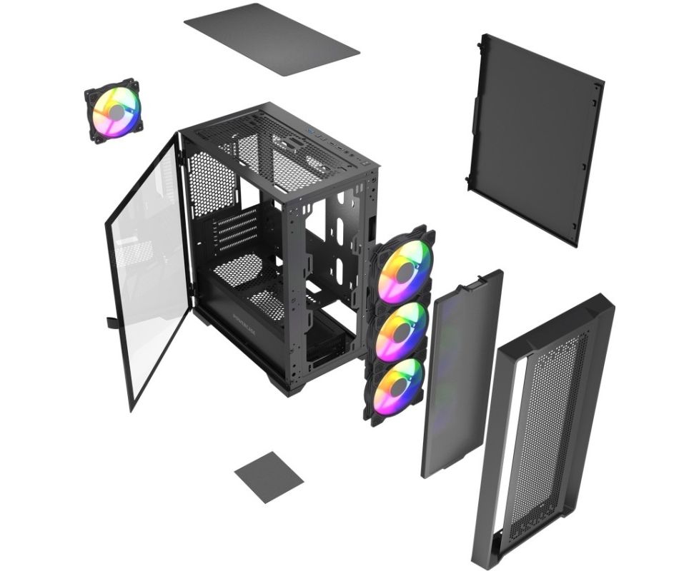 Корпус Powercase ByteFlow Micro Black LE (CAMBFB-A4-LE), Tempered Glass, 4х 120mm ARGB PWM fans, чёрный, mATX