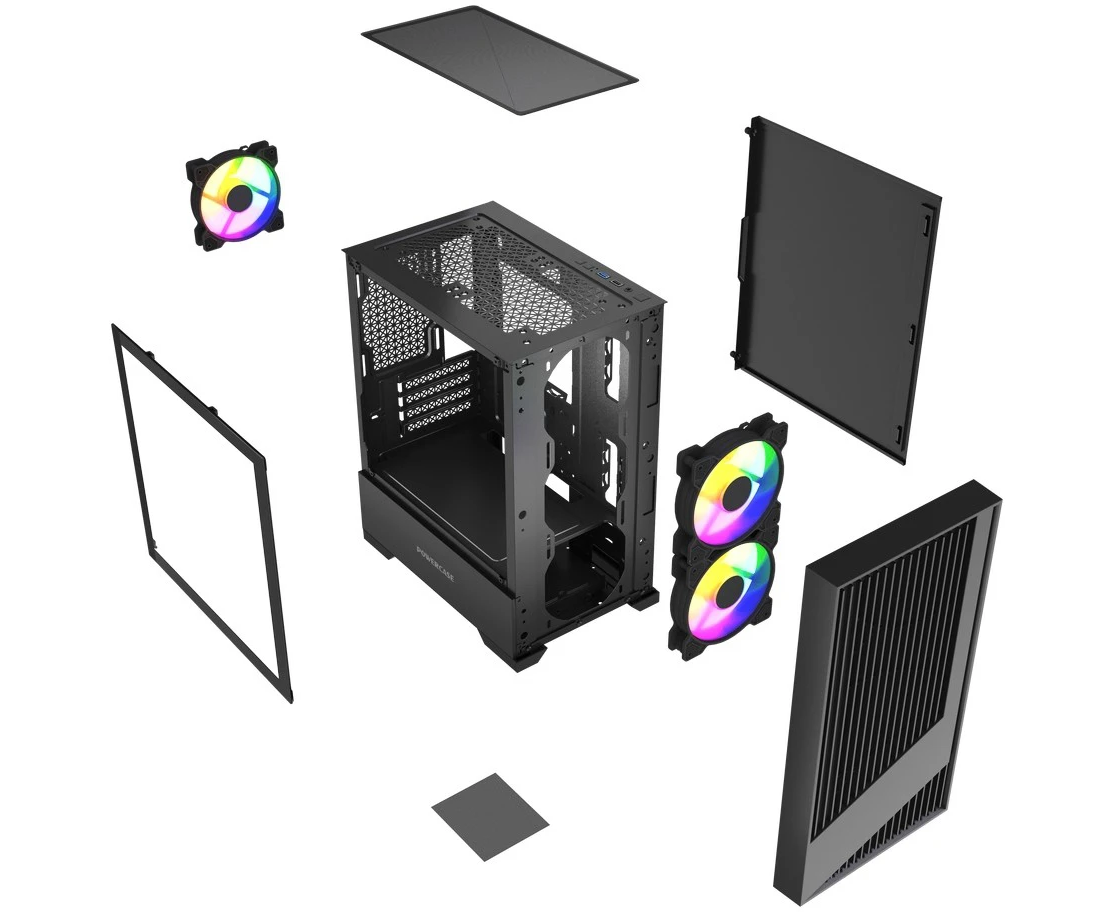 Корпус Powercase Mistral Micro A12B (CMMA12B-L3), Tempered Glass, 3x120mm FRGB fan, чёрный, mATX