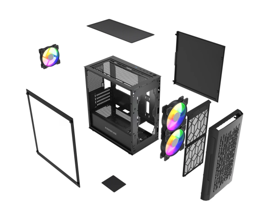 Корпус Powercase Mistral Micro D3B ARGB V2 (CMMDB-A3-V2), Tempered Glass, 2x 140mm ARGB PWM+1x 120mm ARGB PWM, чёрный, mATX
