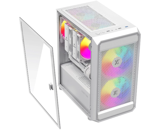 Корпус XASTRA A303M 3ARGB White (A303M-2FC14A-1FC12A-D-WH) mATX/Mesh tempered glass 2x140mm + 1x120mm ARGB PWM fans Door