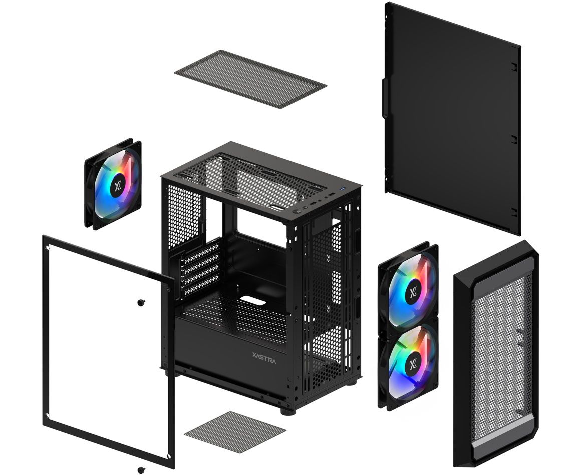 Корпус XASTRA A303M 3FRGB Black (A303M-2FC14F-1FC12F) mATX/Mesh/ tempered glass / 2x140mm + 1x120mm FRGB fans
