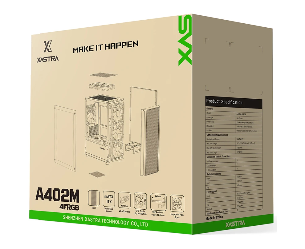 Корпус XASTRA A402M 4FRGB Black (A402M-4FC12F-BK) mATX/Mesh/full-size TG/4x120mm FRGB fans