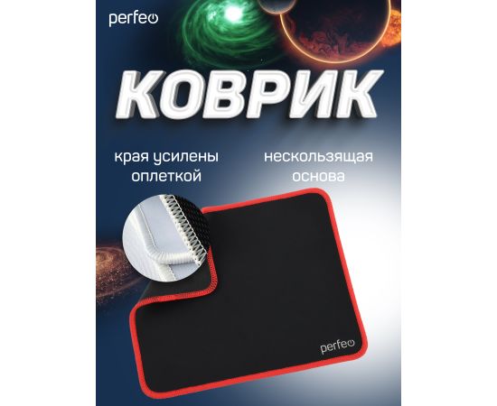 Коврик для компьютерной мыши Perfeo "Black", "Красный", (180*220*2 мм),ткань+резиновое основание
