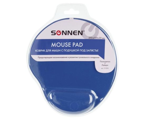 Коврик для мыши SONNEN с подушкой под запястье прекрасно подойдет для тех пользователей, которые продолжительное время работают с персональным компьютером и часами не выпускают мышь из рук.