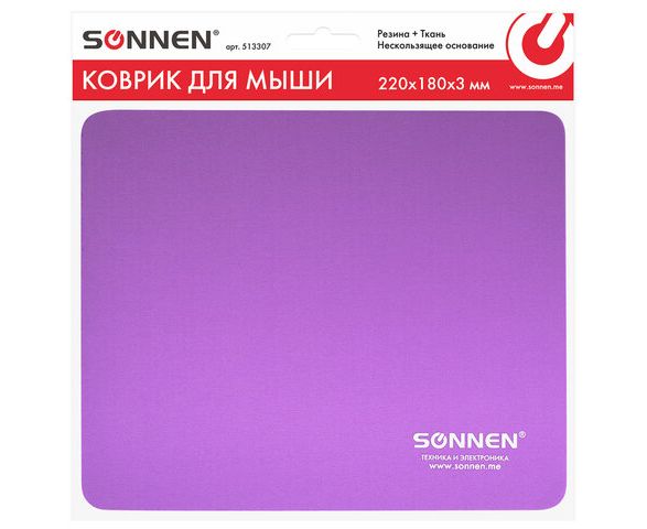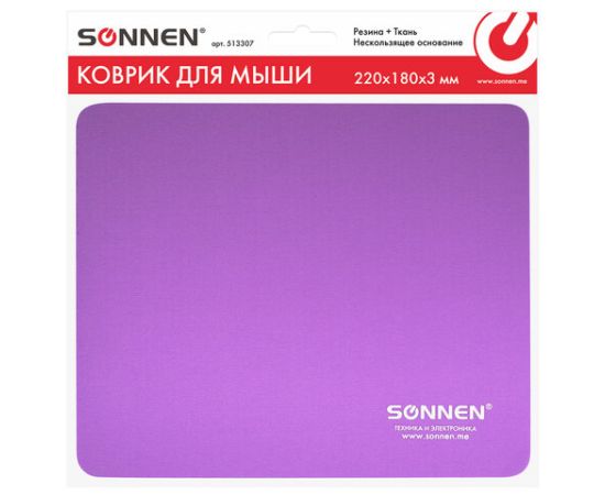 Коврик для мыши Sonnen 513307 Purple, резина + ткань, 220х180х3мм